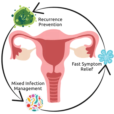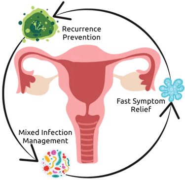 Effective for recurrent and mixed vaginitis – Particularly useful in more complicated and recurring cases where there are numerous pathogens, which would guarantee greater cure rates and eliminate the cycle of repeated infections.